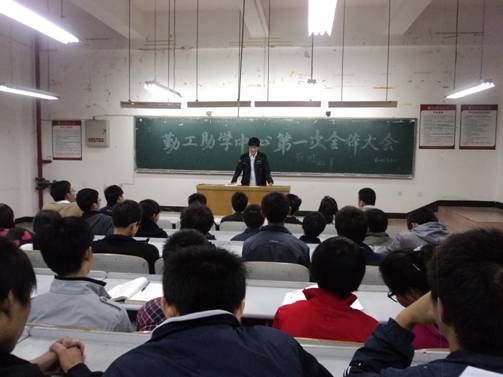 2011年10月26日晚,勤工助学中心在二教103教室举行了勤工助学中心全体大会。会上各位新老部长以及部员进行了深切的交流发言,最后勤工助学中心主任常诚做最后总结,对上一学期的工作做出了高度的评价同时对注入新鲜血液的勤工中心提出了新的要求与希望。