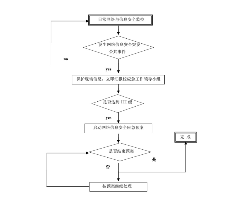 2.以人为本,协同作战。把保障公共利益以及师生的合法权益作为首要任务,由院网络信息安全应急工作领导小组统一领导和协调,督促相关部门协同配合、具体实施,完善应急工作体系和机制,最大限度地避免学院及师生员工遭受损失。