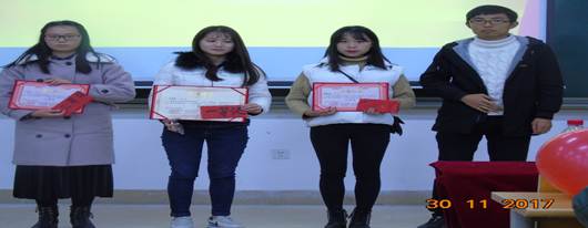 (宣传部、喻欢欢)2017年11月30日(星期四)晚上19:00整,由生物系、管理系、土木系、传媒系联合主办的“聚才艺展风采”闭幕式活动在一号报告厅举行。