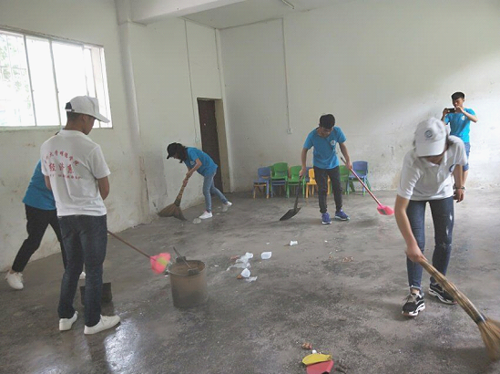 我们两个系分别派出同学去打扫食堂,打扫操场和教室,干得热火朝天。经过同学们的齐心协力,我们终于收拾完毕。