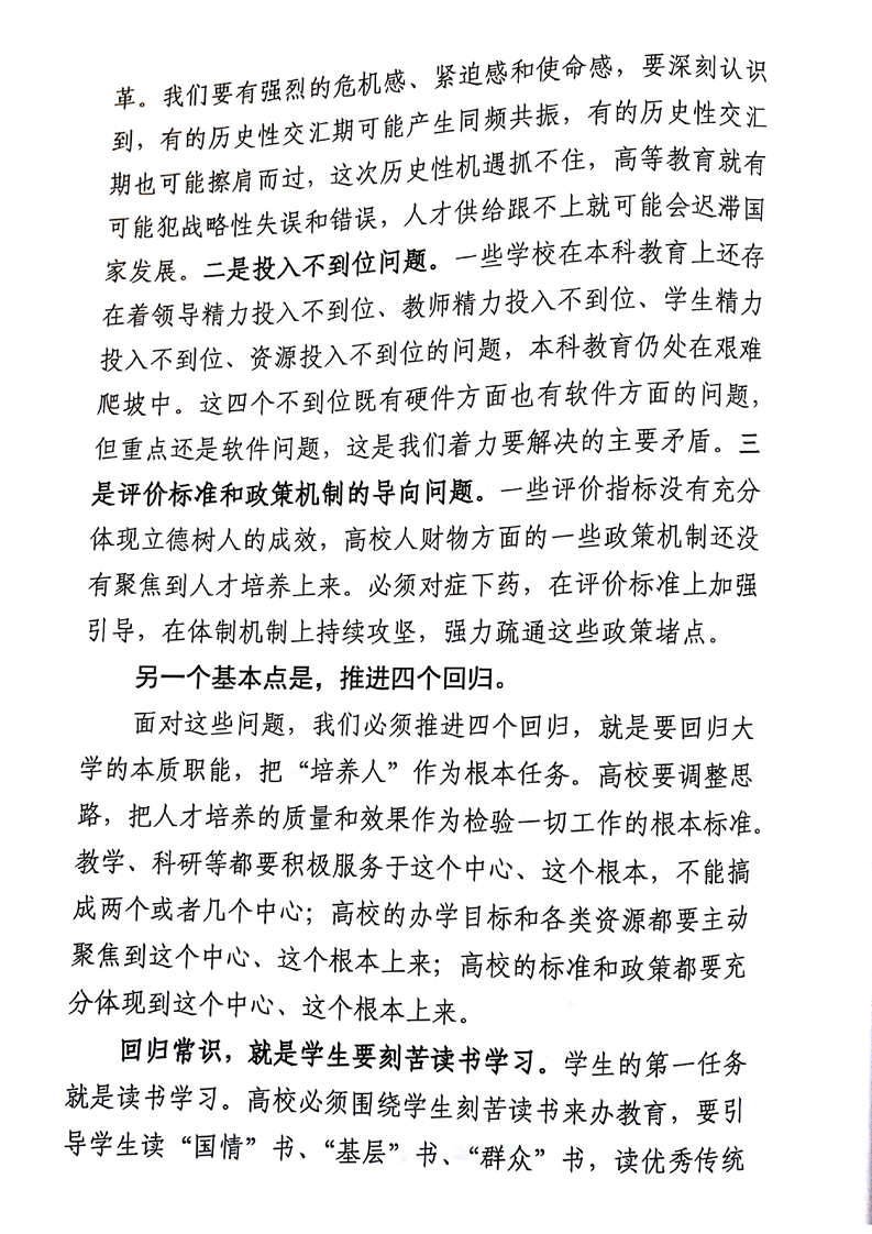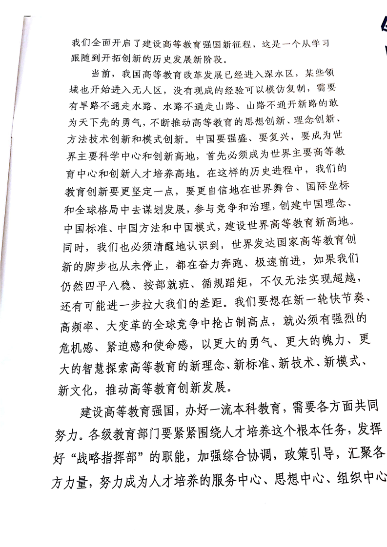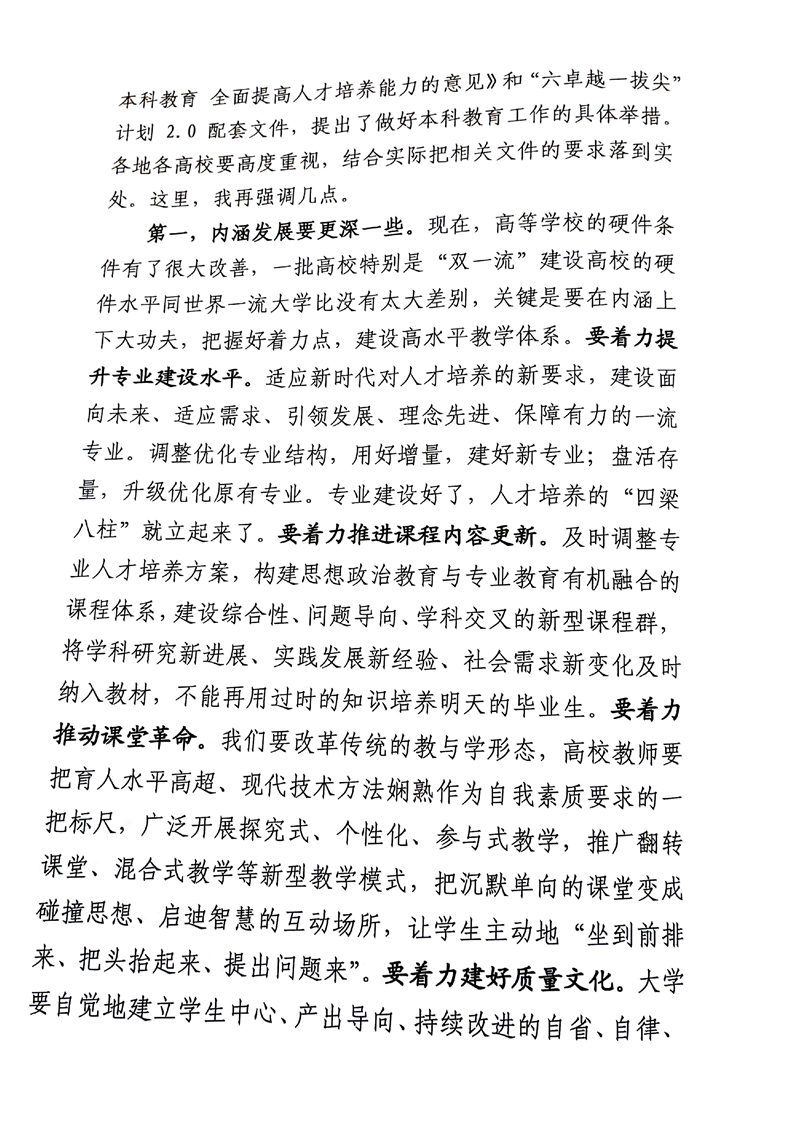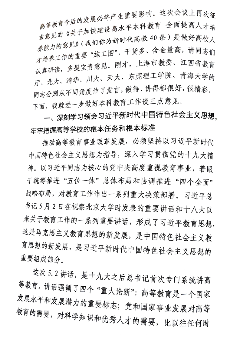 陈宝生在新时代全国高等学校本科教育工作会议上的讲话