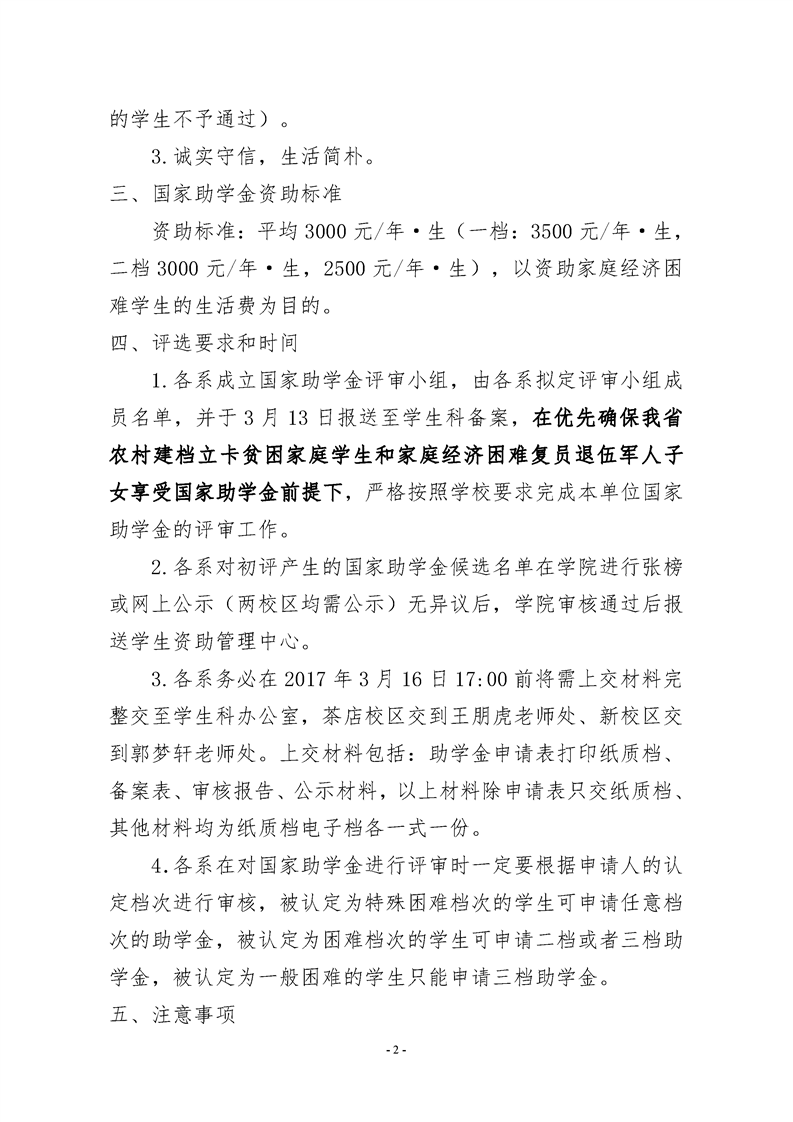 关于做好2016-2017学年度国家助学金 评选工作的通知