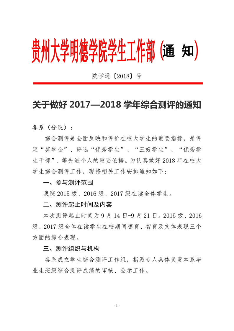 关于做好2017—2018学年综合测评的通知