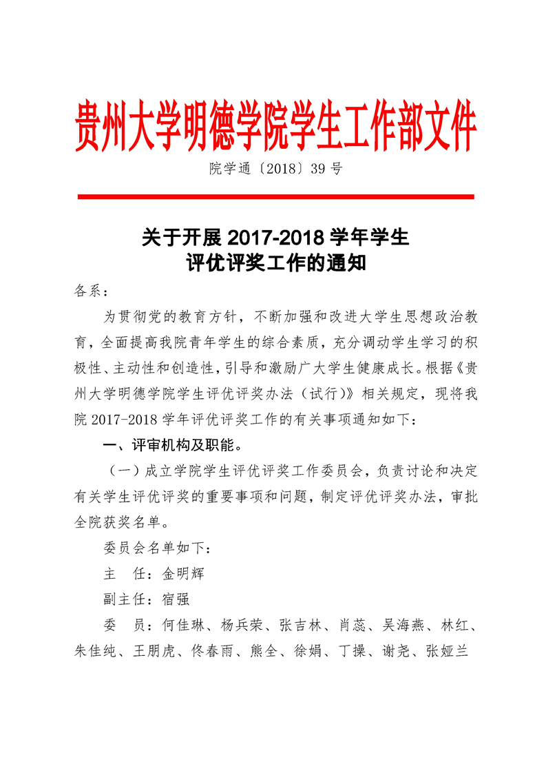 贵州大学明德学院关于评选2017-2018 学度国家励志奖学金的通知