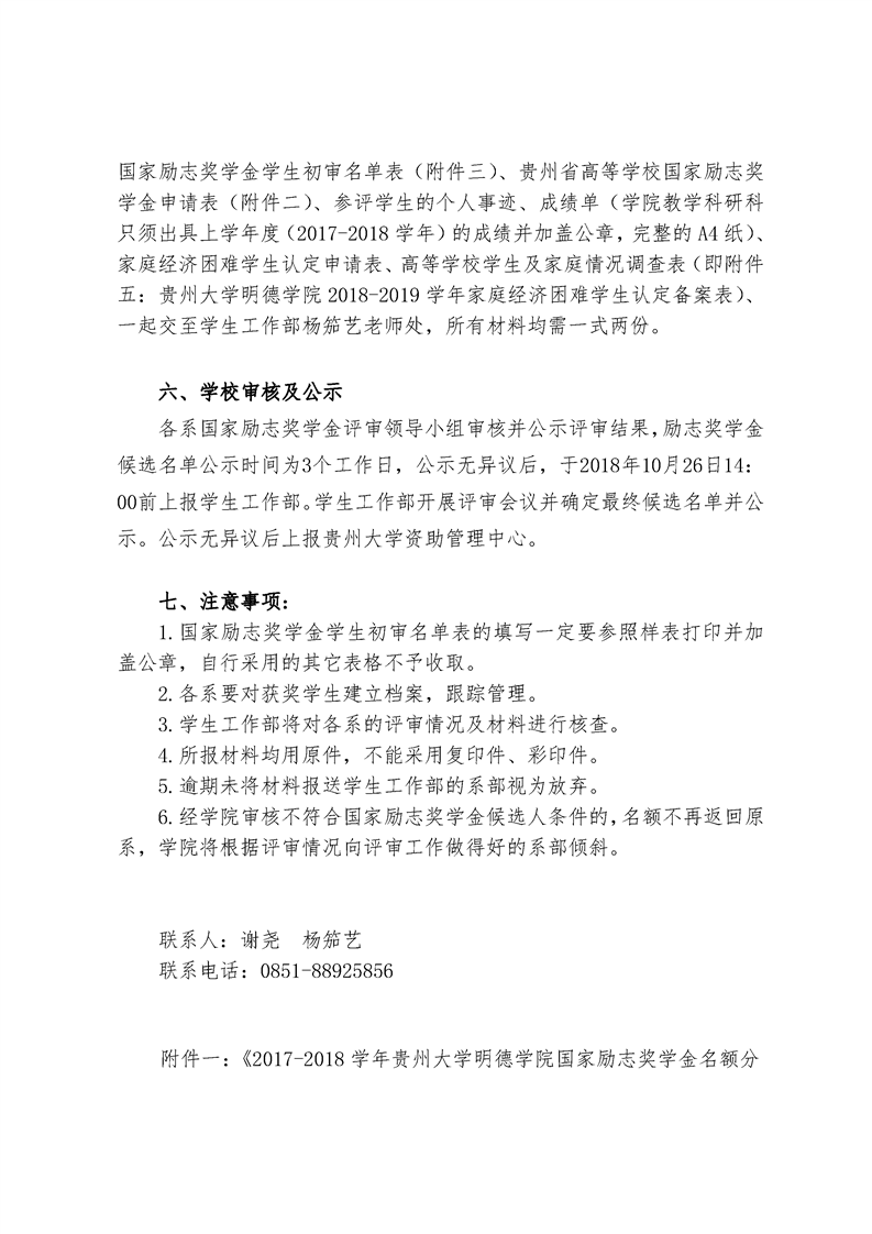 贵州大学明德学院关于评选2017-2018 学度国家励志奖学金的通知