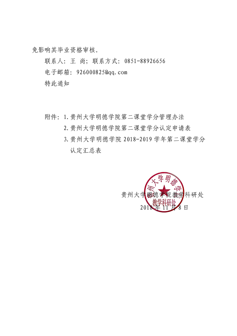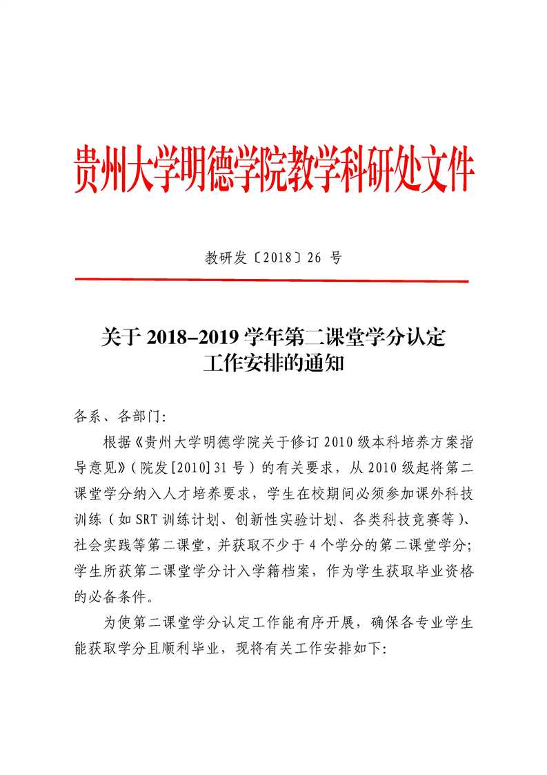 贵州大学明德学院关于2018-2019学年第二课堂学分认定工作安排的通知