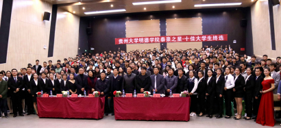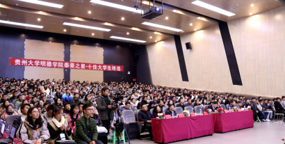 新闻网讯(团宣/袁林 摄影/张招美 侬超艳)12月6日,我院在花溪大学城校区图书馆报告厅举行“泰豪之星·十佳大学生”评选活动。出席本次活动的嘉宾有贵州大学明德学院院长王颖华、贵州大学明德学院常务副院长罗卫东、贵州大学明德学院副院长谢静、贵州大学明德学院党委副书记金明辉、院长助理,传媒系主任康俊、院长助理,学生工作处处长,招生就业处处长宿强、院长助理,财务处处长杨兵荣。担任本次活动的评委是来自各系的13名优秀老师以及12名学生代表。本次活动由共青团贵州大学明德学院委员会主办。