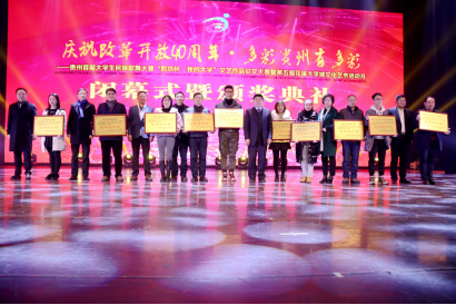 新闻网讯(团宣/何婷 摄影/朱丽峰)12月12日,我院前往贵州民族大学花溪大学城校区参加“庆祝改革开放40周年·多彩贵州有多彩——贵州首届大学生民族歌舞大赛、“黔坊杯·我的大学”黔坊杯·文艺作品征文大赛暨第五届花溪大学城文化艺术活动月闭幕式暨颁奖典礼”。我院党委副书记金明辉受邀出席本次活动。 出席本次活动的领导及嘉宾还有贵安新区党工委书记朱桂云、贵州日报报业集团党委书记,社长邓国超、省文化和旅游厅厅长张玉广、贵州民族大学党委副书记,校长陶文亮、贵州师范大学党委副书记银熙惠、贵州财经大学党委委员副校长杨勇、贵安新区花溪大学城管委会主任罗松华、贵州轻工职业技术学院副院长徐兆柏、贵州民族大学人文科技学院党委副书记王永祥、贵州城市职业学院副院长李剑峰、贵安新区报总编杨龙、贵州黔坊企业管理有限公司董事长兼总裁王江、以及花溪大学城各高校有关领导、贵州日报报业集团有关部门领导,花溪大学城管委会、党武镇部分干部职工、花溪大学城入驻企业代表、入驻花溪大学城各高校学生代表及新闻记者,同时还邀请了新浪网进行现场直播。