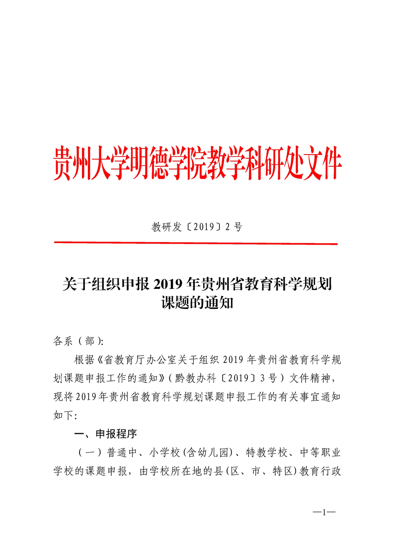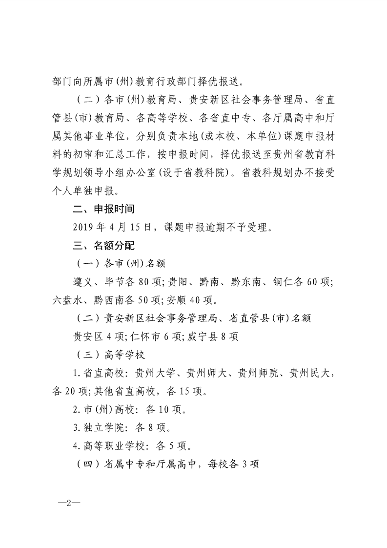 关于组织申报2019年贵州省教育科学规划课题的通知