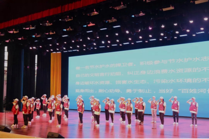随后是志愿者发起的节水护水倡议,我院各系师生代表在声情并茂的表演中认真学习贵州水质文化。接着来到“摇一摇”线上互动环节,武斌儒先生为获得游戏前五名者颁发贵州省北极熊实业有限公司准备的精美礼品。一曲由现场手光灯相伴的《阳光总在风雨后》将活动引入第二阶段游戏环节,我院学生热情高涨,积极参与游戏互动。紧接着贵州轻工职业技术学院老师带来《赤水情》独唱。最后主持人邀请各领导上台进行“水美贵州杯·保护家乡河”演讲大赛活动启动仪式。领导合影留念,观众有序离场进行室外活动。