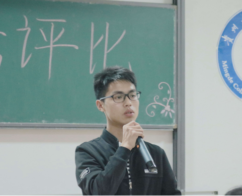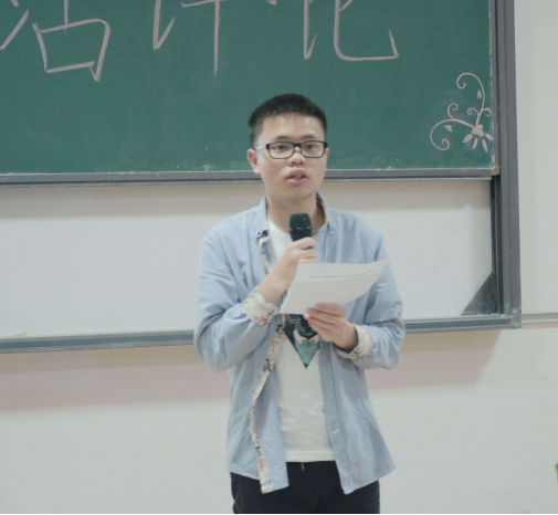 姜波同学对第二组选手作出点评:各班的手工艺品都很不错,但在PPT的文字颜色及选材背景上可以更加完善。接着在计分时段中王承通同学带来歌曲《不再见》。随后主持人公布第二组分数并邀请院团委组织部部长陈亮宣布获奖者。本次活动针对每个班级的人数到达情况进行了扣分规则,最终前三名获奖者分别是:造价1802班、通信1701班、行管1702班。最佳解说员为造价1802班张婷。经管系团总支副书记彭守伙为获奖者颁奖。