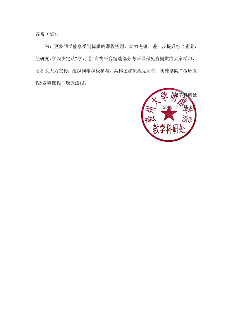 贵州大学明德学院关于“考研课程&素养课程”学习的通知