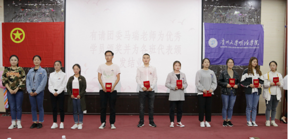 新闻网讯(团委/罗一檾 团宣/陈力 摄影/侬超艳)5月10日,我院在花溪大学城校区一号报告厅举行“青马工程”第二十七期业余团校暨第二十六期团干培训结业典礼。莅临本次活动的嘉宾和评委有团委马瑞老师、土木系团总支书记江坤老师、院团委学生会第一副书记何湘龙以及各系主席团代表和学生代表。