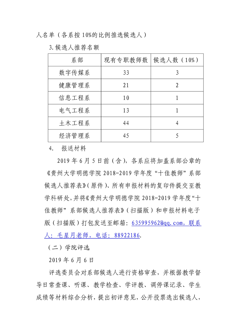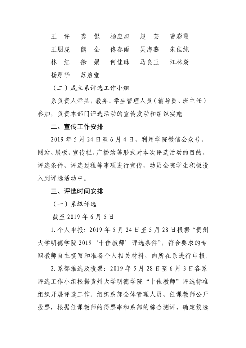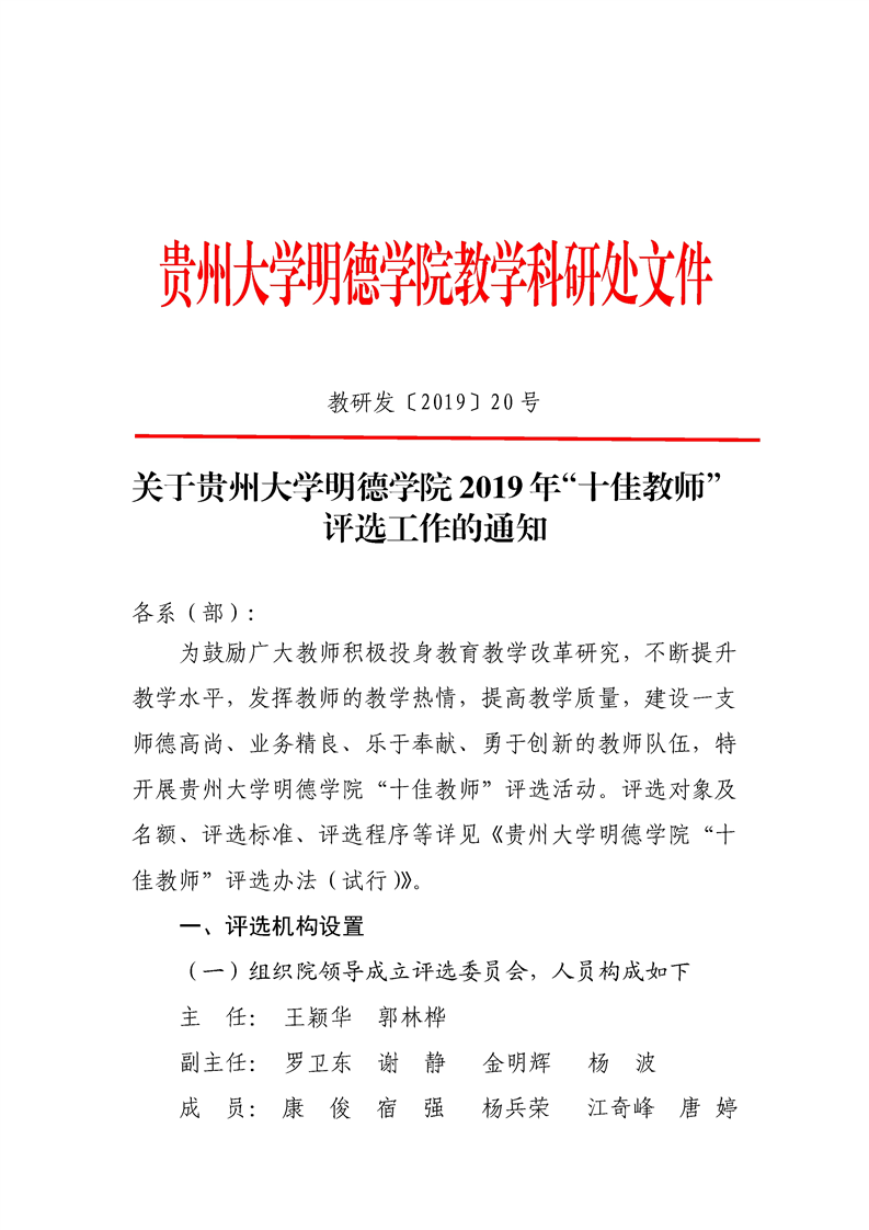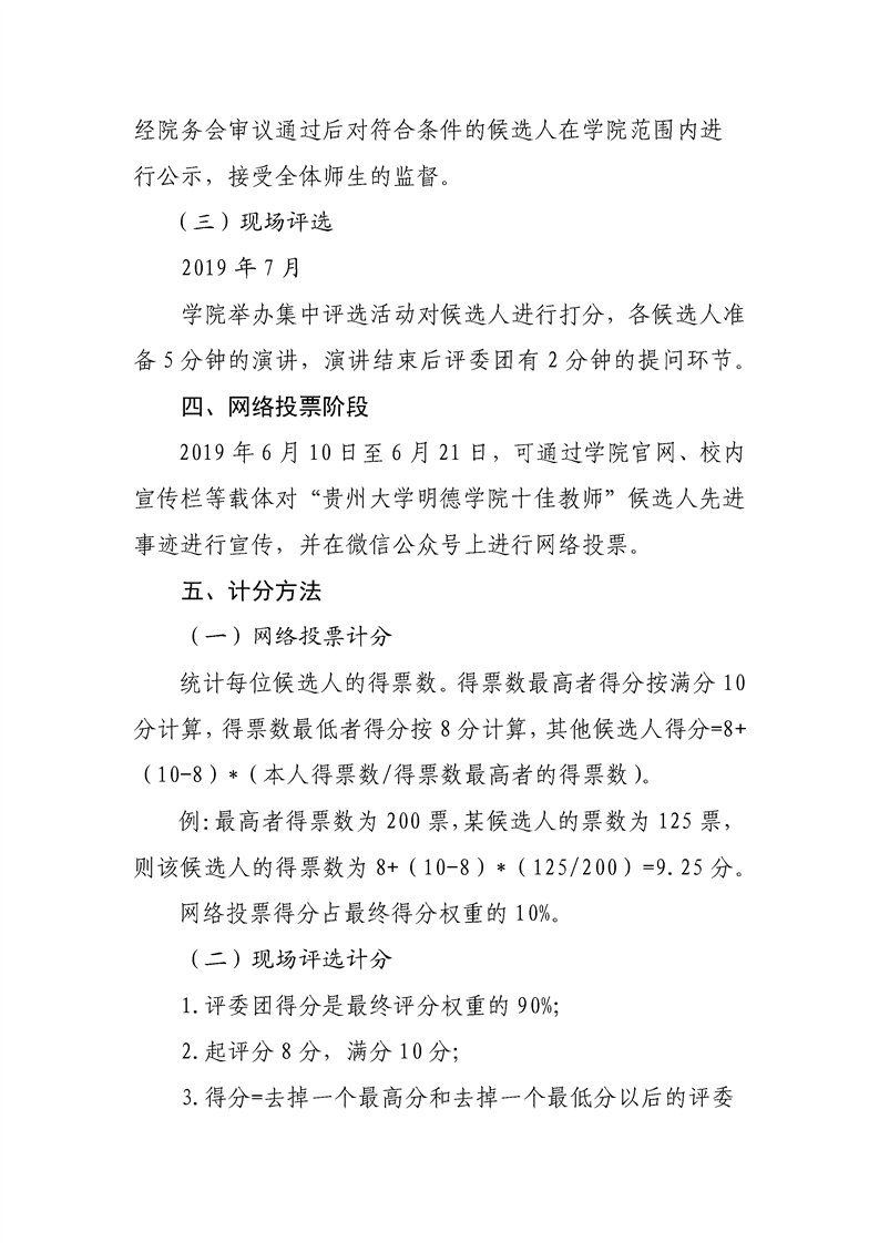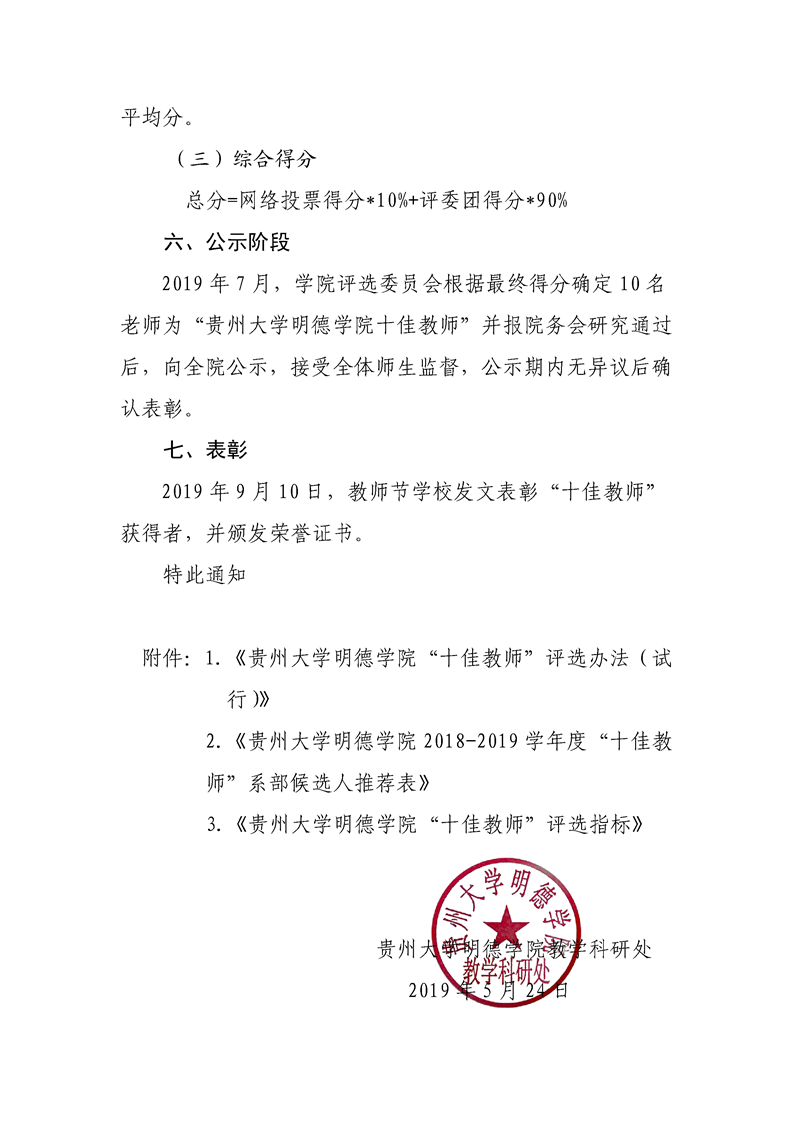 关于贵州大学明德学院2019年“十佳教师”评选工作的通知