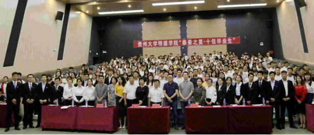 新闻网讯(团委罗一檾/ 团宣/陈力 摄影/周林炜)6月5日,我院在花溪大学城校区图书馆报告厅举办“泰豪之星•十佳毕业生”评选活动。莅临本次活动的嘉宾有:贵州大学明德学院常务副院长罗卫东,贵州大学明德学院副院长谢静,院长助理、学生工作处处长、招生就业处处长宿强,院长助理、财务处处长杨兵荣。本次比赛评委团由学院领导、各系领导和部分教师共十三名、学生代表共十二名组成。各系学生代表参加了本次活动。本次活动由贵州大学明德学院学生工作处主办,共青团贵州大学明德学院委员会承办。