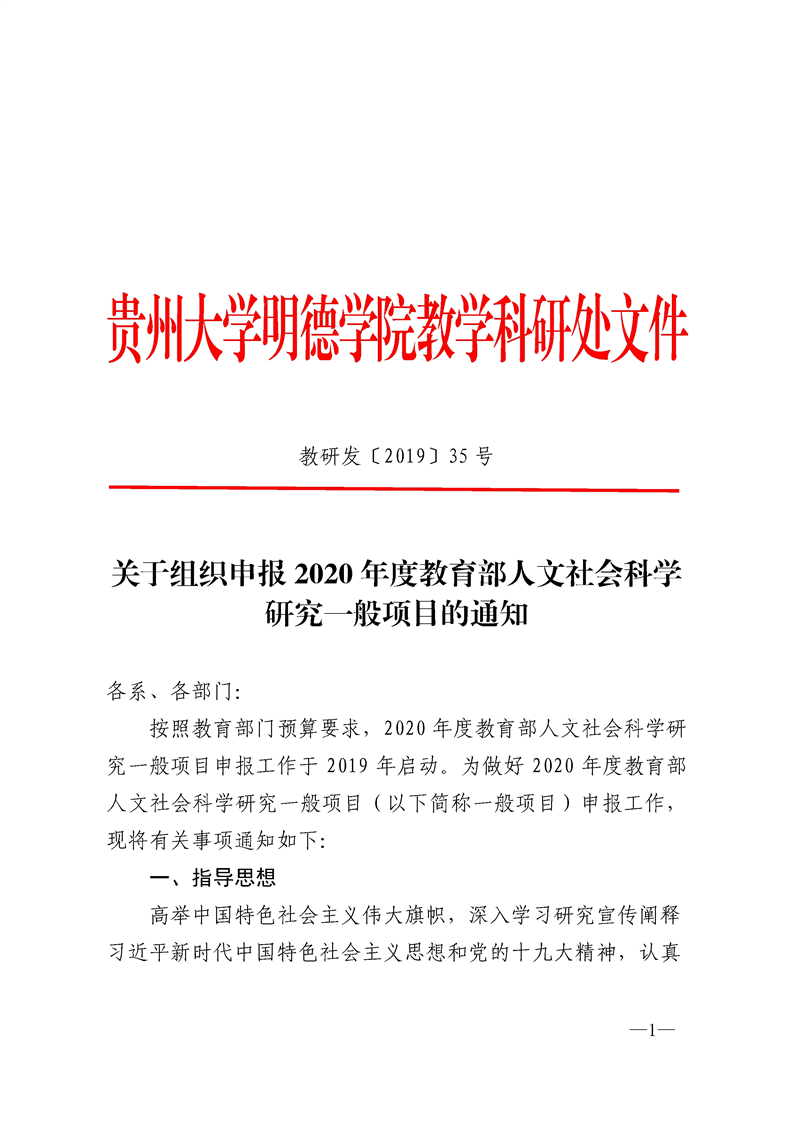 关于组织申报2020年度教育部人文社会科学研究一般项目的通知