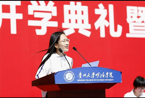 大会进行第四项,教师代表、校友代表、新生代表分别进行发言,教师及校友代表讲述了个人在大学学习和生活中的所感所想,新生代表表达了自己进入大学努力学习的决心。