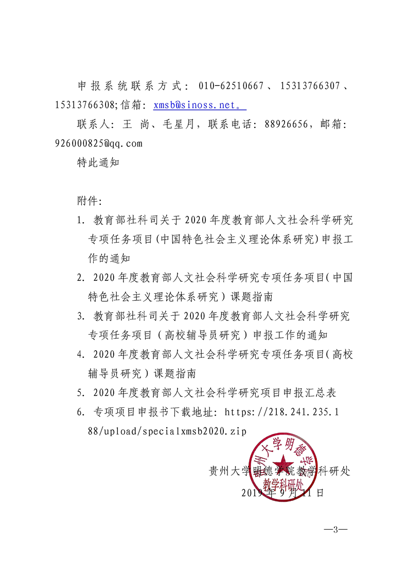 附件3: 教育部社科司关于2020年度教育部人文社会科学研究专项任务项目(高校辅导员研究)申报工作的通知.doc