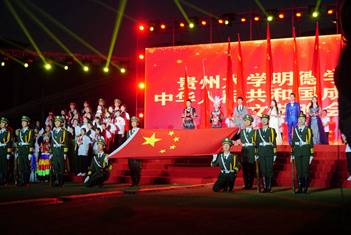 新闻网讯(团委/罗一檾团宣/陈罗言 摄影/白淇宣 杨涛)9月27日,我院在一号足球场举行“庆祝中华人民共和国成立70周年文艺晚会”。莅临本次晚会的嘉宾有:贵州大学明德学院副董事长谢田凯、泰豪产城集团副总裁,贵州大学明德学院董事会秘书邹桂花、贵州大学明德学院院长王颖华、贵州大学明德学院副院长谢静、贵州大学明德学院副院长杨波、贵州大学明德学院党委书记郭林桦、贵州大学明德学院党委副书记金明辉、贵州大学明德学院院长助理,学生工作处处长宿强、贵州大学明德学院助理,财务处处长杨兵荣。本次晚会由贵州大学明德学院主办,共青团贵州大学明德学院委员会承办。