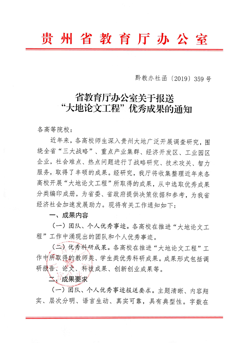 关于转发省教育厅办公室关于报送“大地论文工程”优秀成果的通知