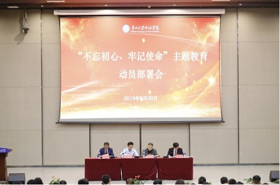 新闻网讯(供稿/党群工作部 郑佳立 韩雪 供图/党群工作部 王坚 冯文)9月20日,“不忘初心、牢记使命”主题教育动员部署会在我院图书馆报告厅举行。贵州大学“不忘初心、牢记使命”主题教育第二巡回指导组成员、全体党委委员、班子成员出席会议,各总支书记/副书记、党支部书记、党外人士及民主党派代表、全院党员师生参加会议。学院院长王颖华主持会议。