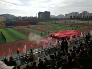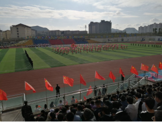 随着升国旗仪式完毕,由我院社团带来的开场节目率先点燃全场,赢得了观众席上的阵阵掌声,随后,各系代表方队依次进场。