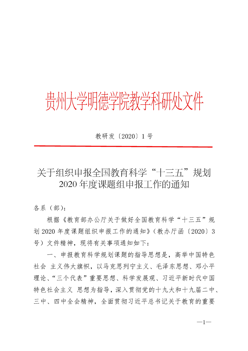 关于组织申报全国教育科学“十三五”规划2020年度课题组申报工作的通知