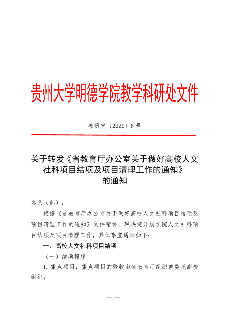 关于转发《省教育厅办公室关于做好高校人文社科项目结项及项目清理工作的通知》的通知