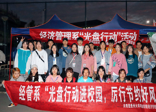 新闻网讯(供稿/经济管理系 罗一檾 贾紫薇 陈丹 丁大雪 供图/经济管理系 新闻中心)2020年10月20日,为了弘扬中华民族勤俭节约的美德,贵州大学经济管理系积极响应响应上级团委的号召,展开了为期4天的“光盘行动”公益宣传活动,厉行勤俭节约,反对铺张浪费!