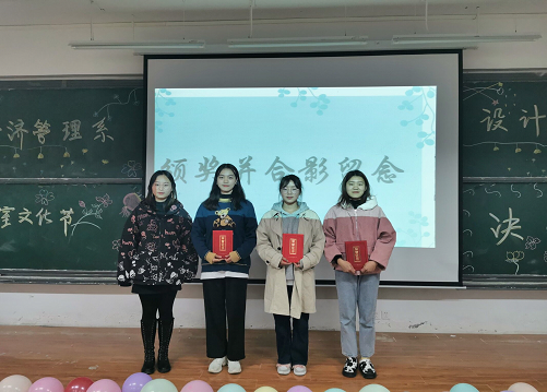 (图为经管系学生会负责人与获奖寝室代表合影留念)