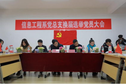 2020年12月18日中午12:50,信息工程系党总支在信息楼A414教室召开换届选举党员大会。参加此次大会的有贵州大学明德学院院长王颖华同志,贵州大学明德学院党委委员、院长助理杨兵荣同志以及信息工程系全体师生党员。