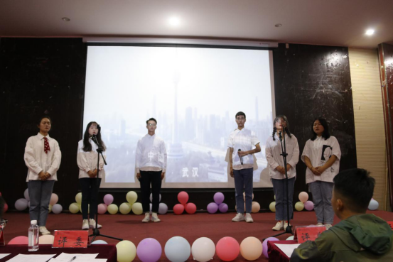 晚上七点整,主持人上台介绍嘉宾、评委与参赛选手,宣布比赛正式开始。第一组四位参赛选手与团队,以视频+音乐+朗诵的方式,讲述了一个又一个让人热泪盈眶的抗疫事迹,从全国各地区援助湖北武汉的大举动讲到抗疫志愿者的小故事,向我们展现出一方有难八方支援的中国精神,体现出中国全民抗疫的伟大民族风貌。第一组选手展示完毕后,互动环节的到来让同学们稍微低沉的心情激荡起来,为接下来的第二组选手展示作品提供了良好的氛围。
