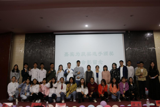 我院语言社、广播站团队摘取桂冠,智能工程系团队获得第二名的好成绩,数字传媒系网络与新媒体1901班陈婷婷同学获得第三名。新闻中心蔡雨良、语言社社长张玉婷为获奖选手颁发奖品并合影留念。全体参赛选手与各系部负责人合影留念,至此,活动圆满结束。