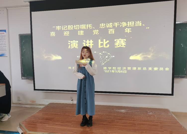 新闻网讯(供稿/经济管理系 罗一檾 陈丹 贾紫薇 丁大雪 供图/经济管理系 新闻中心)为了深入学习贯彻习近平总书记视察贵州重要讲话精神,结合深入开展党史学习教育,让我院师生在庆祝中国共产党百年华诞的重大时刻接受一次理想信念的"大洗礼”,彰显新时代青年爱党爱国情怀,以百年党史之光辉壮阔,激发青春一辈奋进力量,经济管理系于5月6号在b栋教学楼b211举行了“牢记殷勤嘱托,忠诚干净担当,喜迎建党百年”演讲比赛。