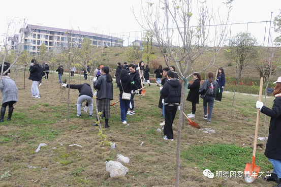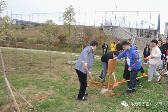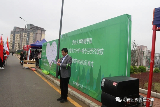 新闻网讯(团委/肖蕊 宣传部/陈圆朋 摄影/李祎迪)2021年3月12日,我院在篮球场举办“青山绿水共守护•桃李芬芳齐绽放”植树节护林活动。参与本次活动的嘉宾有贵州大学明德学院党委书记郭林桦、学生工作处处长佟春雨、团委书记肖蕊,以及各系教师、学生代表。