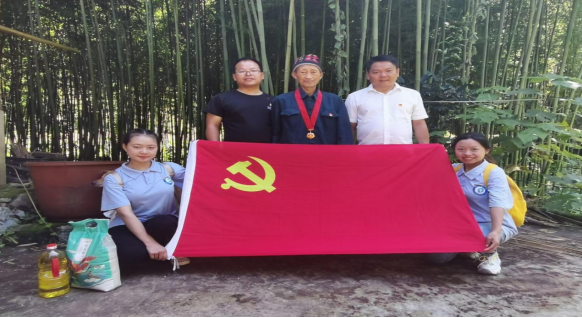 据悉,贵州省罗甸县木引镇云保村住着这样一位衷心为党奉献50余年的老党员——班毓德。7月13日早上,在赵义远和谢文强两位老师的带领下,贵州大学明德学院经济管理系“三下乡”社会实践服务队从云里小学出发,跟随云保村党支部书记杨昌兴和云保村驻村第一书记卢志友一行前往班毓德同志家中,探望慰问这位年满85岁的老党员。经济管理系“三下乡”社会实践服务队还为他送去大米和粮油。面对突然造访,老人显得格外热情。他与同学们讲述了自己在党50年的故事与经历,随后拿出在党50年纪念章向同学们展示。一枚在党50年纪念章意义非凡,它象征的是一段难忘的历史、一份沉甸甸的荣誉。