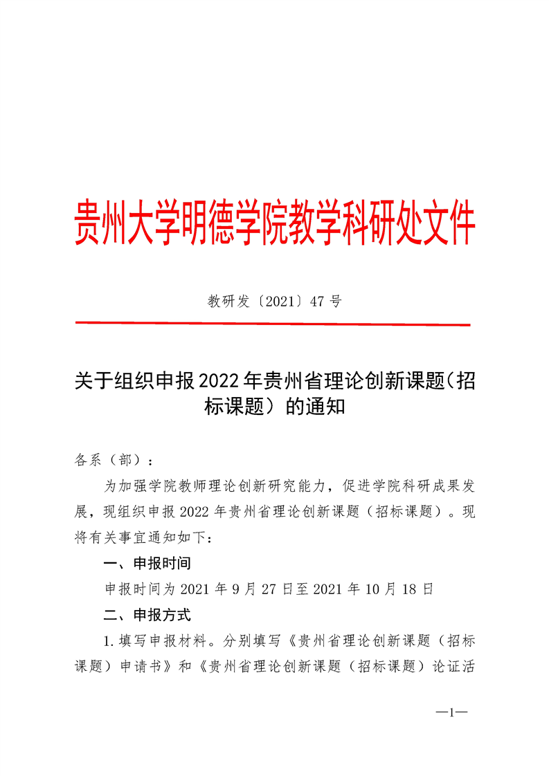 关于组织申报2022年贵州省理论创新课题(招标课题)的通知