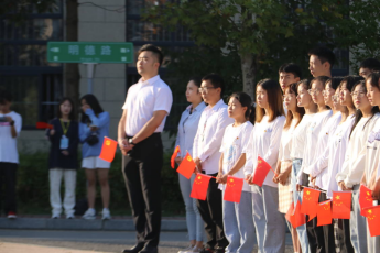 早上七点,我院各系师生代表入场,在全场庄严肃穆的注视之下,国旗护卫队出旗、升国旗。以庄严威武的步伐,绘出出我院师生青春心向党、奋力新时代的时代风貌,以振聋发聩的号令,道出我院师生缅怀革命先烈、迎接祖国盛典的精神与热情。