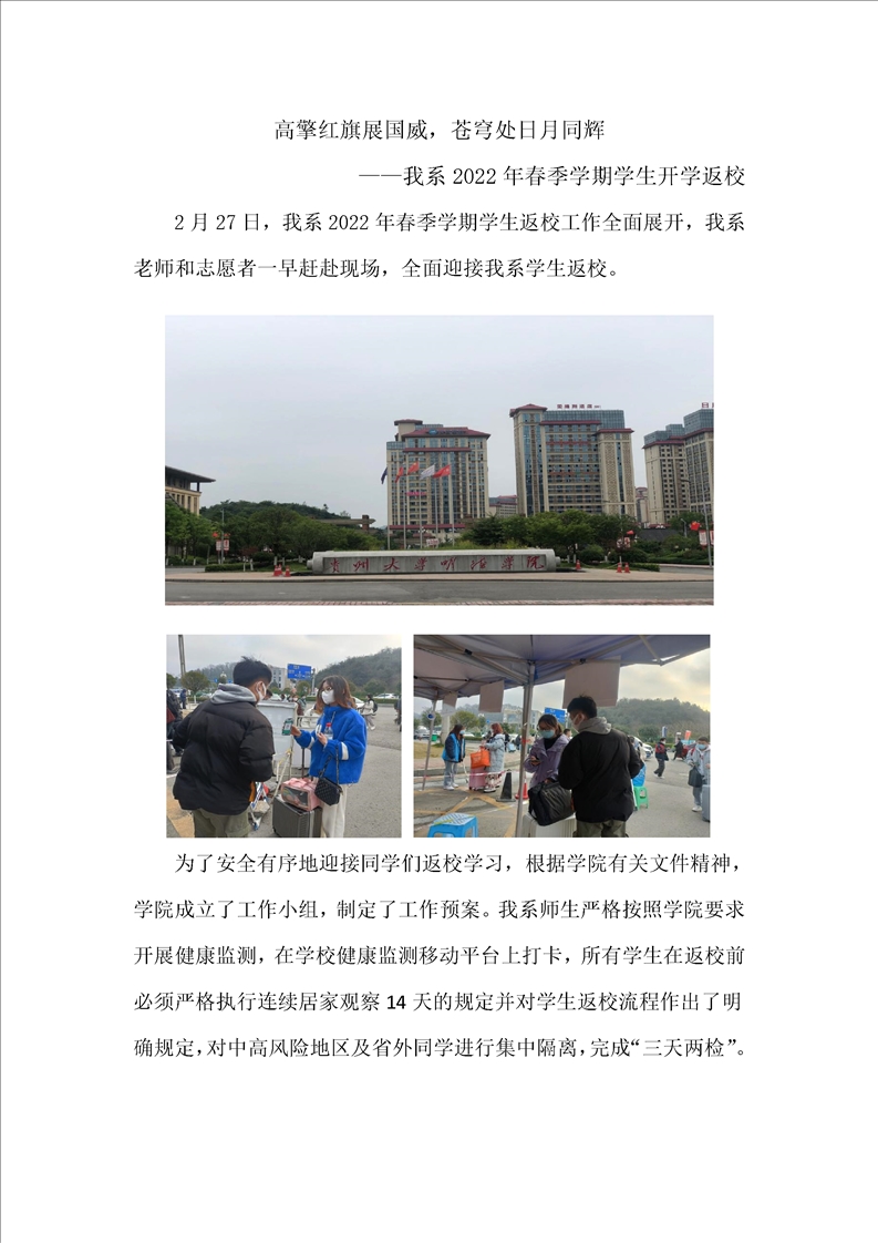 ——我系2022年春季学期学生开学返校