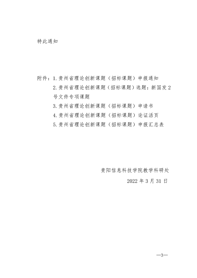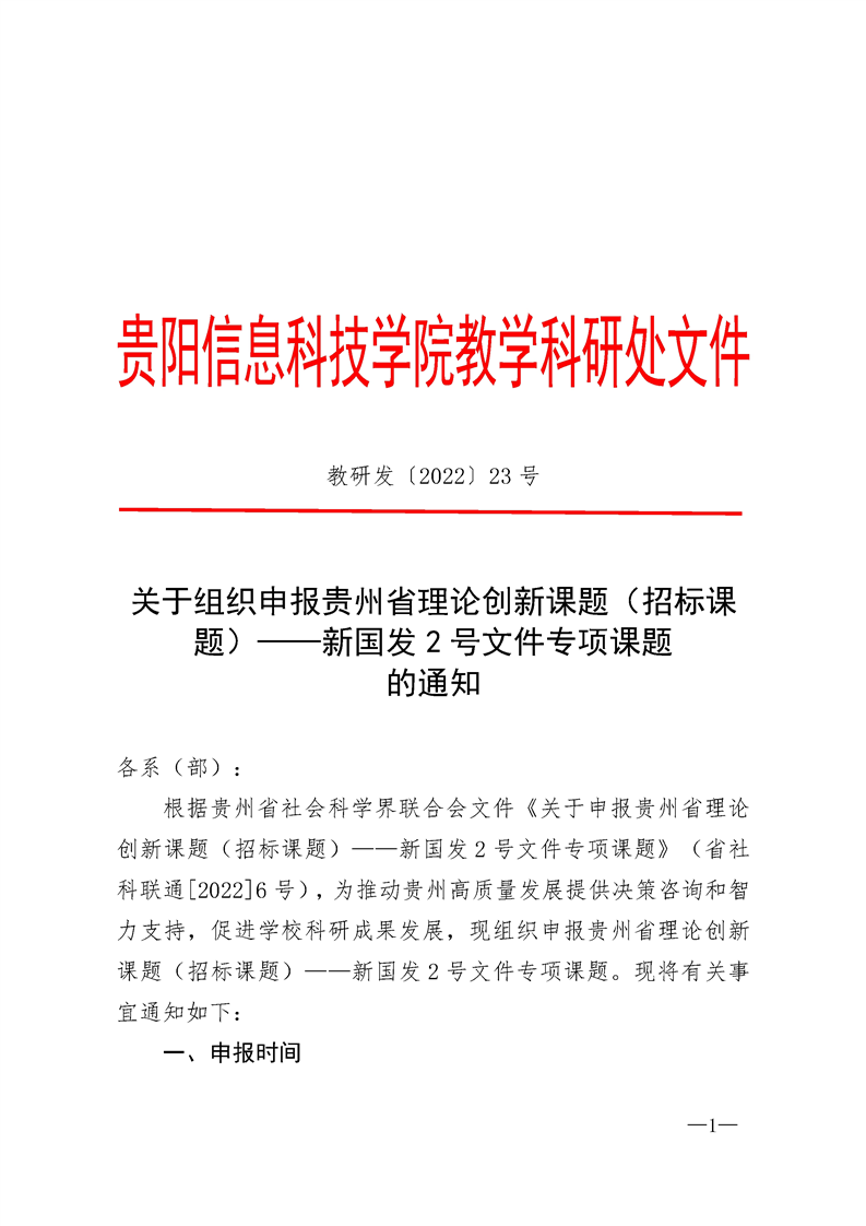 关于组织申报贵州省理论创新课题(招标课题)——新国发2号文件专项课题的通知