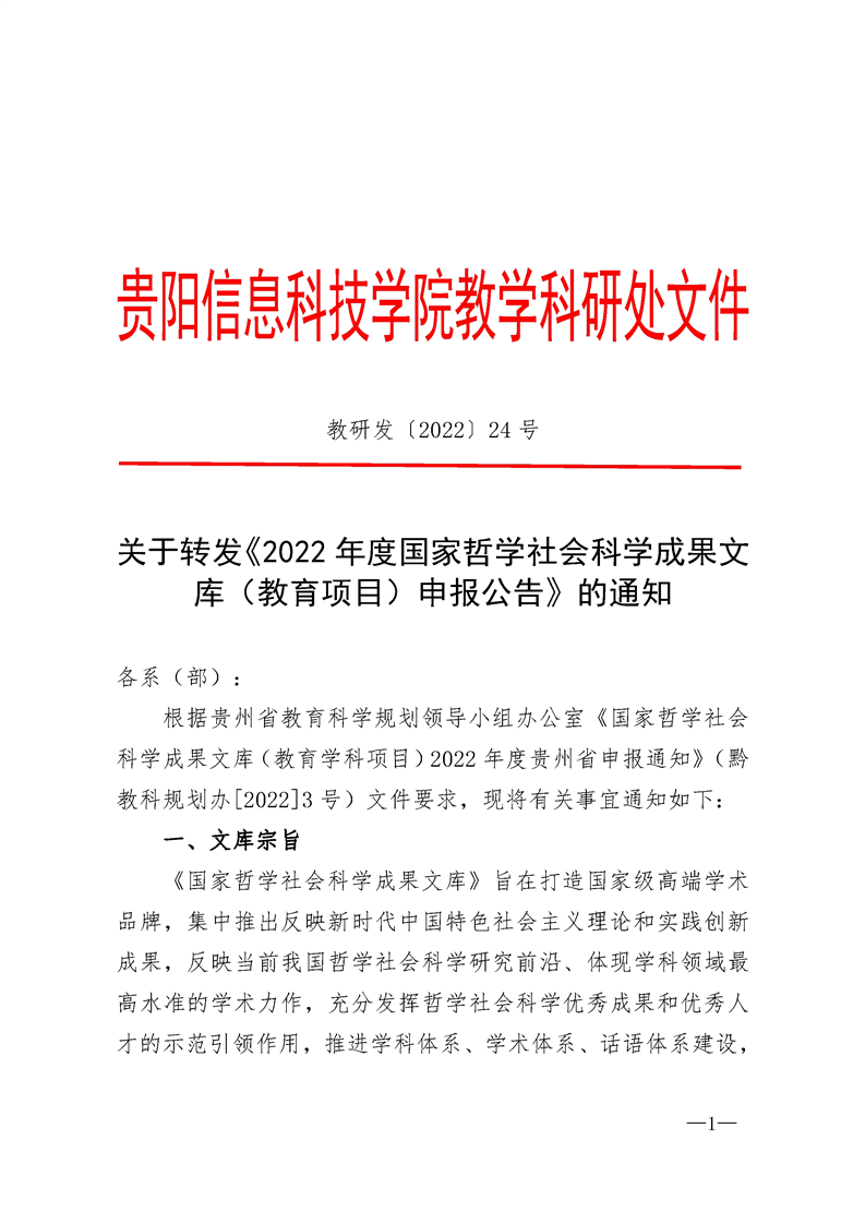 附件1:国家哲学社会科学成果文库(教育学科项目)2022年度贵州省申报通知.pdf