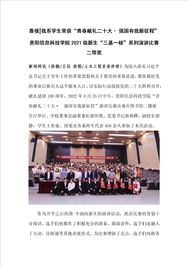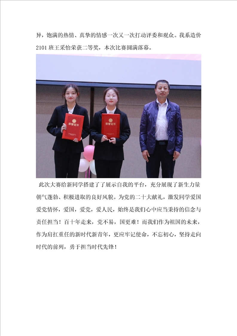 喜报|我系学生荣获“青春献礼二十大· 强国有我新征程”pp电子官方网站2021级新生“三基一核”系列演讲比赛二等奖