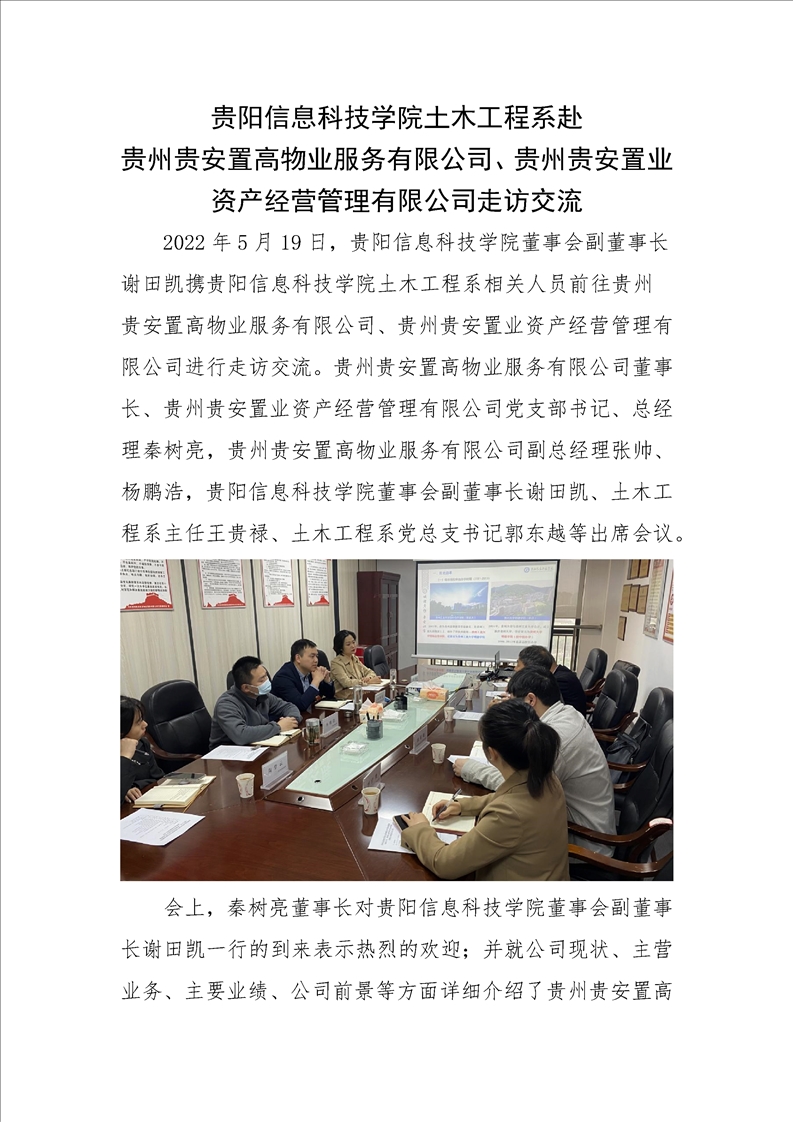 pp电子官方网站土木工程系赴贵州贵安置高物业服务有限公司、贵州贵安置业资产经营管理有限公司走访交流