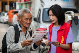 图为同学给群众讲解禁毒知识