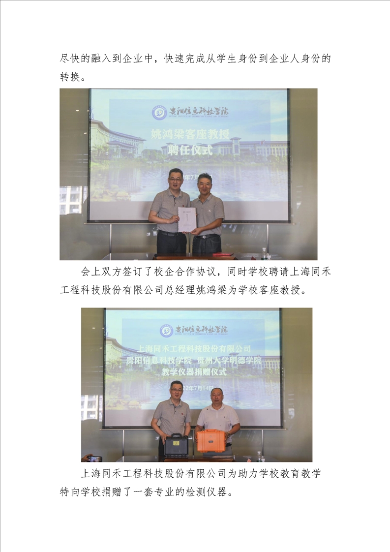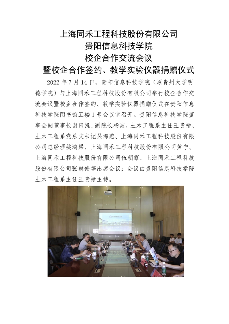 上海同禾工程科技股份有限公司pp电子官方网站校企合作交流会议暨校企合作签约、教学实验仪器捐赠仪式