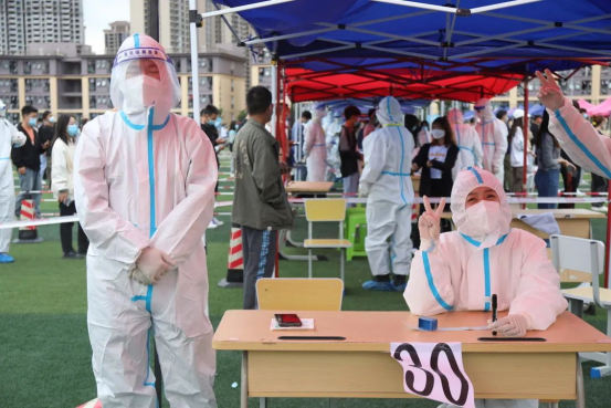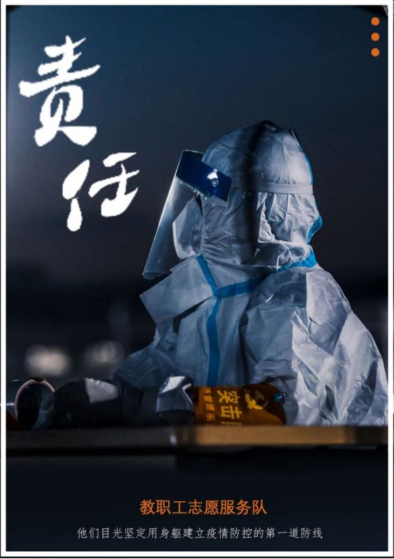 突如其来的疫情让我们的城市按下了暂停键,学校第一时间做出了反应并开展全院核酸检测,在这学校的“危难时刻”我们作为老师自然要挺身而出,重返第一线为学生们做出老师力所能及的服务。第一次穿防护服,那一刻我体会到如同战士奔赴战场的无畏,这不仅仅是一件衣服,它更是一份责任。防护服的责任是保护志愿者以及医务人员,就好像我们作为老师应该成为学生们的“防护服”保护他们的成长,即使汗水打湿脊背,双手因为手套泡至发白,我也将无所畏惧。在穿上防护服为学生服务时,学生们投来的感动的目光,更是我前行的动力。战“疫”还未结束,师生齐心,战“疫”必胜。愿来年春暖花开日,师生共赏春日美!