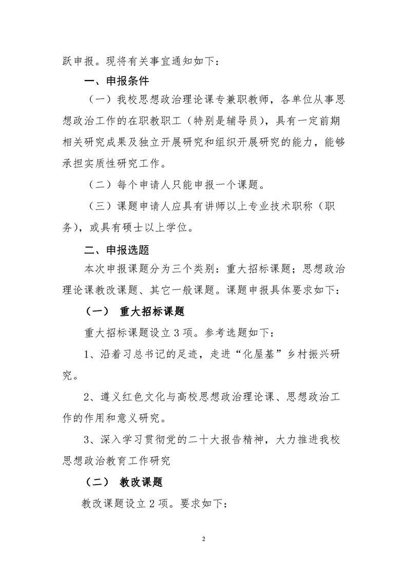 关于组织申报校级思想政治理论课、思想政治工作专项研究课题的通知