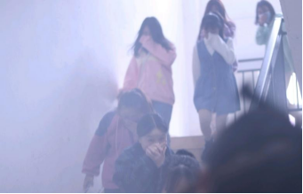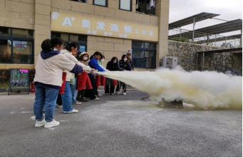 为让逃生演练更加真实,在楼道中放置了烟雾弹,营造大火中浓烟滚滚的场景。随着警铃声响起,逃生演练正式开始,同学们捂住口鼻弯腰前行,穿过浓烟,全体同学安全到达集合点,消防演练顺利完成。
