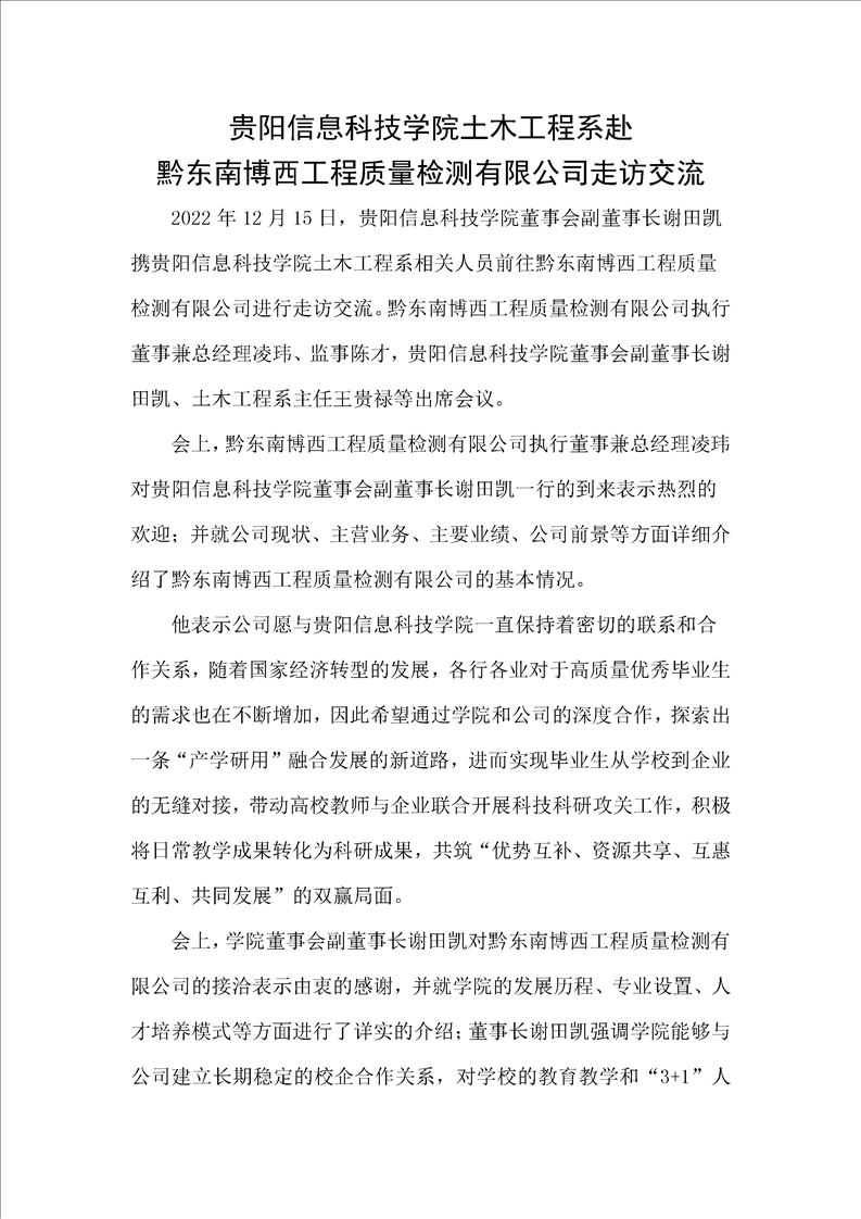 pp电子官方网站土木工程系赴黔东南博西工程质量检测有限公司走访交流