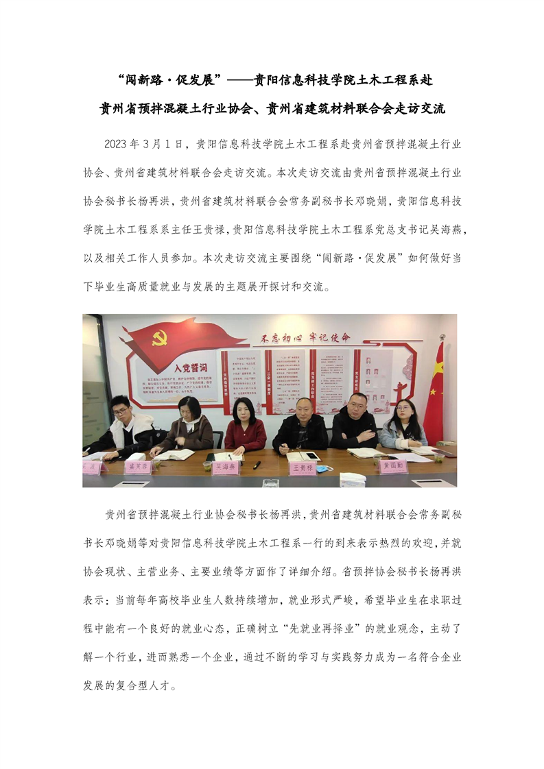 “闯新路·促发展”——pp电子官方网站土木工程系赴贵州省预拌混凝土行业协会、贵州省建筑材料联合会走访交流